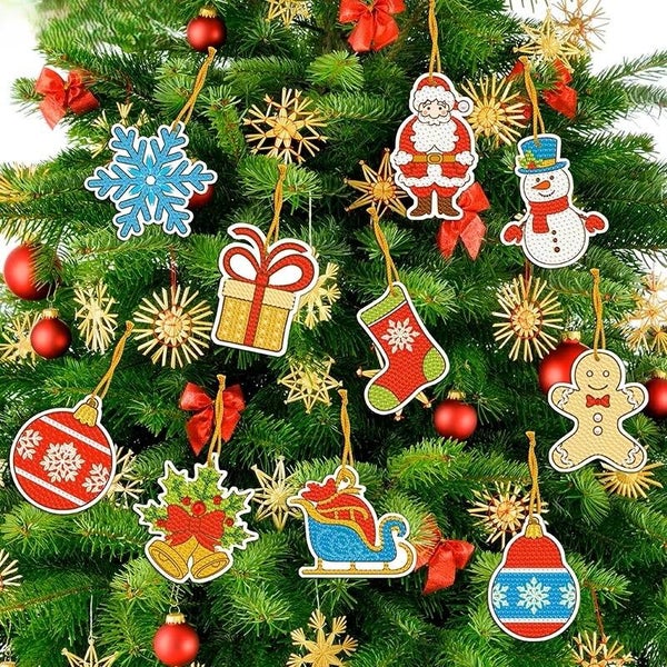 Diamond Painting maakt de feestdagen nog gezelliger met deze vrolijke set van 10 kerstboomhangers. Elke hanger heeft een eigen kerstthema zoals een kerstman, een sneeuwpop, een kerstklok, een cadeautje en vrolijke kerstballen. Door de kleuren en de sprankelende details passen deze kerstboomhangers perfect in elke kerstboom en brengen ze direct sfeer in huis. De set bestaat uit 10 losse hangers die je eenvoudig met het koordje ophangt.